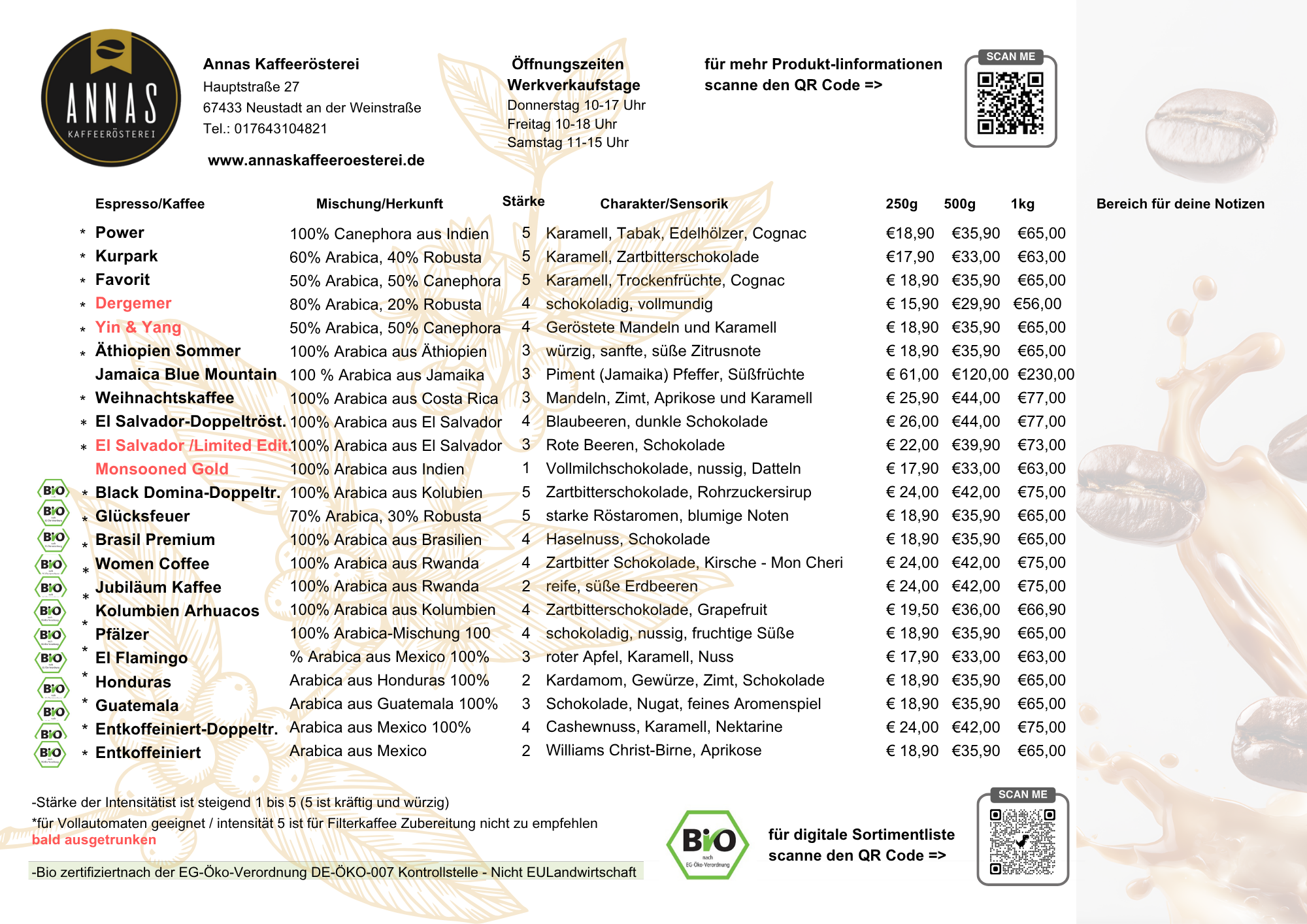 Annas Kaffeeraritäten – Alles auf einen Blick
