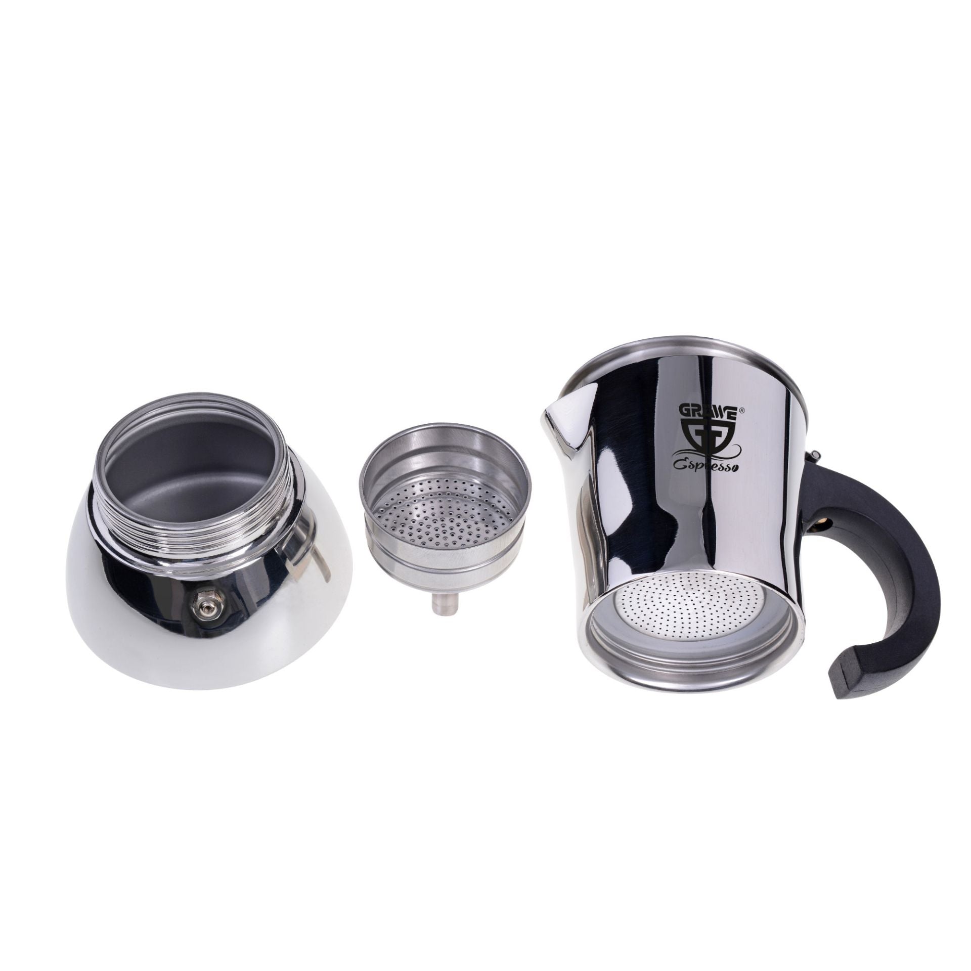 Der GRÄWE Espressokocher ermöglicht Dir alle deine Kaffeegetränke basiert auf Espresso zuzubereiten. Er ist in zwei Größen erhältlich – für 4 Tassen (160 ml) was mit eigene Reduziereinsatz auch für 2 Tassen ermöglicht oder 6 Tassen (240 ml) mit Reduziereinsatz 4 Tassen ermöglicht – und bietet die perfekte Lösung für Kaffeegenuss allein oder in Gesellschaft.